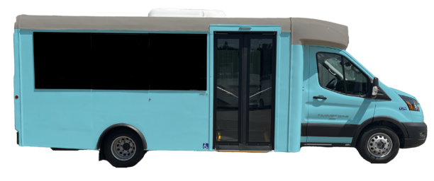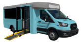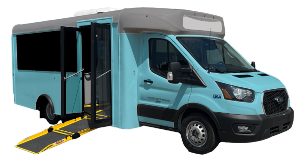 Built on the fuel-efficient Ford Transit chassis, the Independence offers a low cost of ownership while maintaining the safety and dependability that is expected from ARBOC. The 96” wide body allows for easy maneuverability inside the vehicle for both ambulatory and wheelchair passengers. With an available passenger capacity of up to 13 ambulatory or five wheelchairs, the Independence is perfect for use as a shuttle, in non-emergency medical transport, for assisted living facilities, or in public transit. Occupants will appreciate the superior headroom, as well as the visibility offered by the large passenger windows.